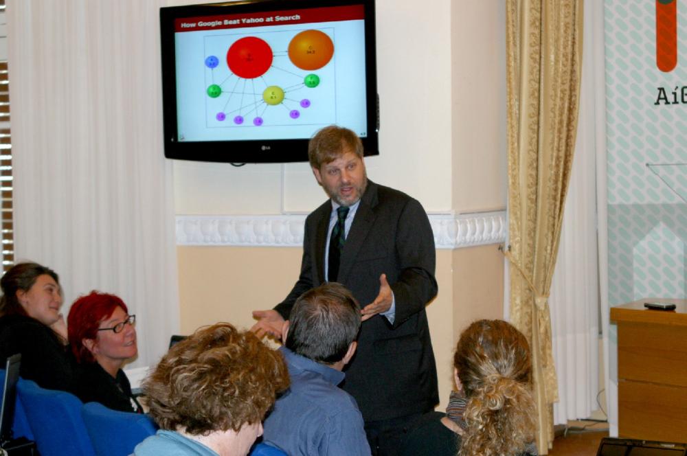 Στην κατάμεστη αίθουσα συνεδρίων της ΕΣΗΕΜ-Θ ολοκληρώθηκαν το σεμιναρίου «Πώς να αξιοποιήσετε τα Μέσα Κοινωνικής Δικτύωσης» που παρέδοσε ο αμερικανός αναλυτής και εκπαιδευτής διαδικτυακών επικοινωνιών Eric Schwartzman.
