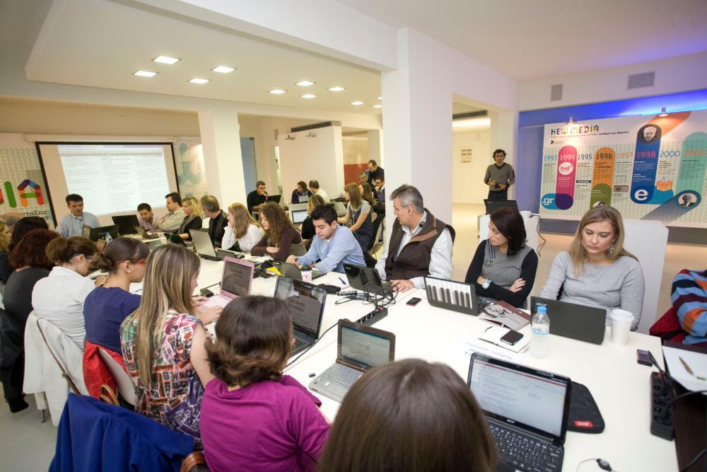 Οι πενήντα συμμετέχοντες (δημοσιογράφοι, φοιτητές και στελέχη φορέων) παρακολούθησαν τον εισηγητή Αντρέα Παναγόπουλο, δημοσιογράφο, ο οποίος ανέλυσε την οργάνωση μιας «εικονικής Αίθουσας Σύνταξης στον υπολογιστή μου».