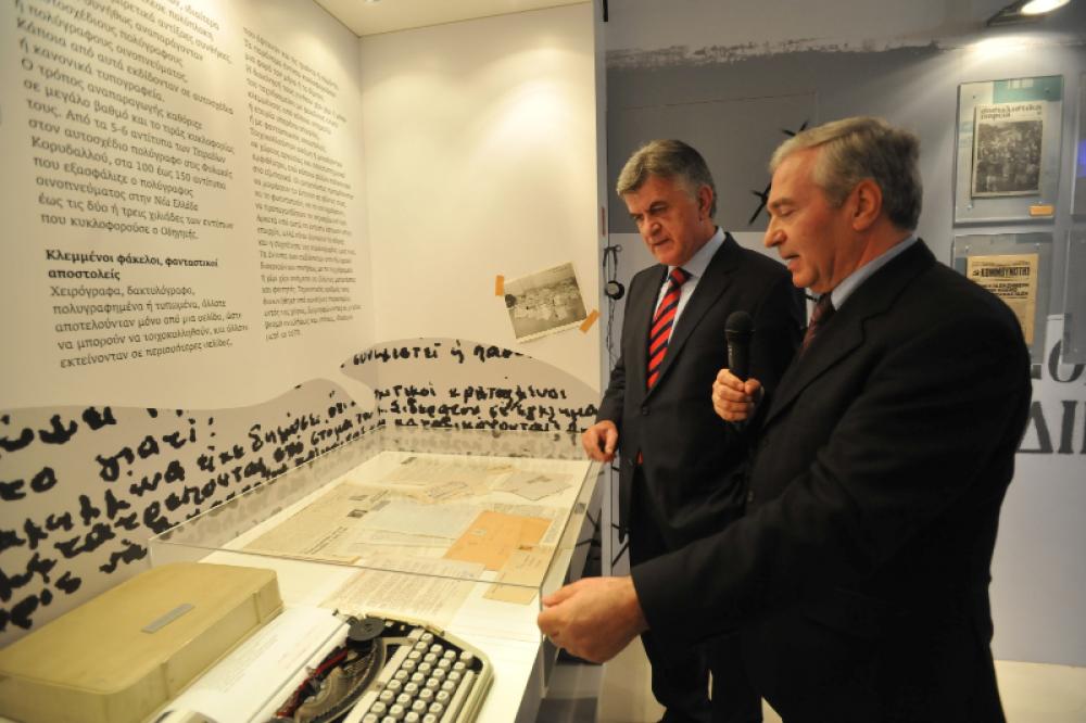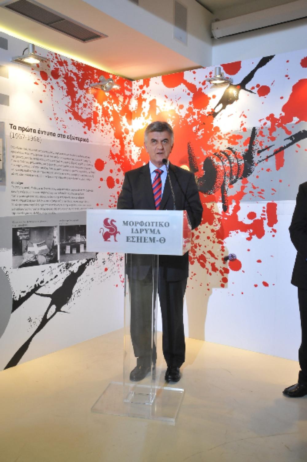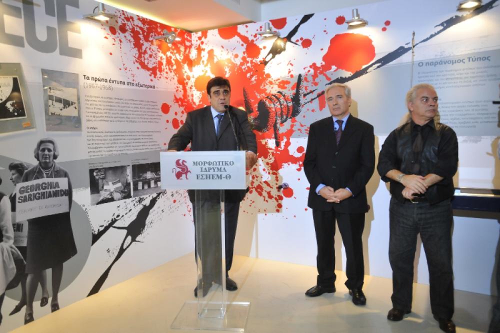 Η έκθεση ντοκουμέντων «Δικτατορία 1967-1974: Η έντυπη αντίσταση» άνοιξε για το κοινό στις 17 Νοεμβρίου 2009, εγκαινιάστηκε τη Δευτέρα 30 Νοεμβρίου 2009 και λειτούργησε στην αίθουσα του Μορφωτικού Ιδρύματος της ΕΣΗΕΜ-Θ ως τις 27 Φεβρουαρίου 2010 – τελευταίοι επισκέπτες της ήταν οι εισηγητές της ημερίδας με το ίδιο θέμα, που πραγματοποιήθηκε την ημέρα εκείνη.