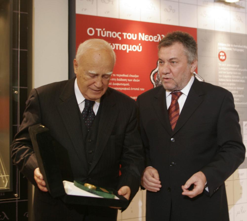 Στον Πρόεδρο της Δημοκρατίας επιδόθηκε το Χρυσό Μετάλλιο Τιμής της ΕΣΗΕΜ-Θ. Τον κ. Παπούλια ξενάγησε στην Έκθεση ο αντιπρόεδρος του Ιδρύματος Χρίστος Ζαφείρης.