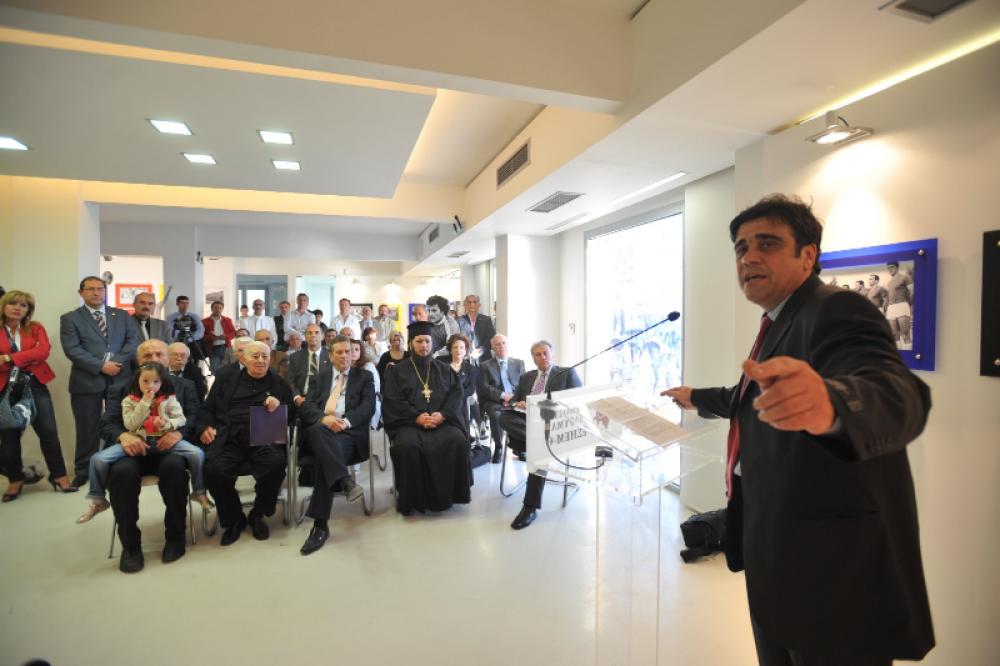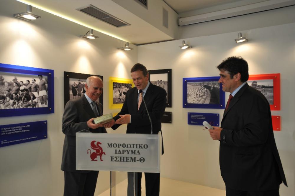 Τα εγκαίνια της έκθεσης έγιναν στις 9 Μαΐου 2009 από τον υφυπουργό Αθλητισμού Γιάννη Ιωαννίδη. Στο πλαίσιο των εγκαινίων της έκθεσης τιμήθηκαν από το Μορφωτικό Ίδρυμα της ΕΣΗΕΜ-Θ δύο κορυφαίες προσωπικότητες της αθλητικής δημοσιογραφίας, ο Γιάννης Λογοθέτης και ο Σταύρος Πετρακόπουλος, «κόσμημα ο καθένας στο είδος του, για όσα προσέφερε στον αθλητισμό», όπως είπε ο κ. Ιωαννίδης επιδίδοντάς τους τις τιμητικές διακρίσεις.