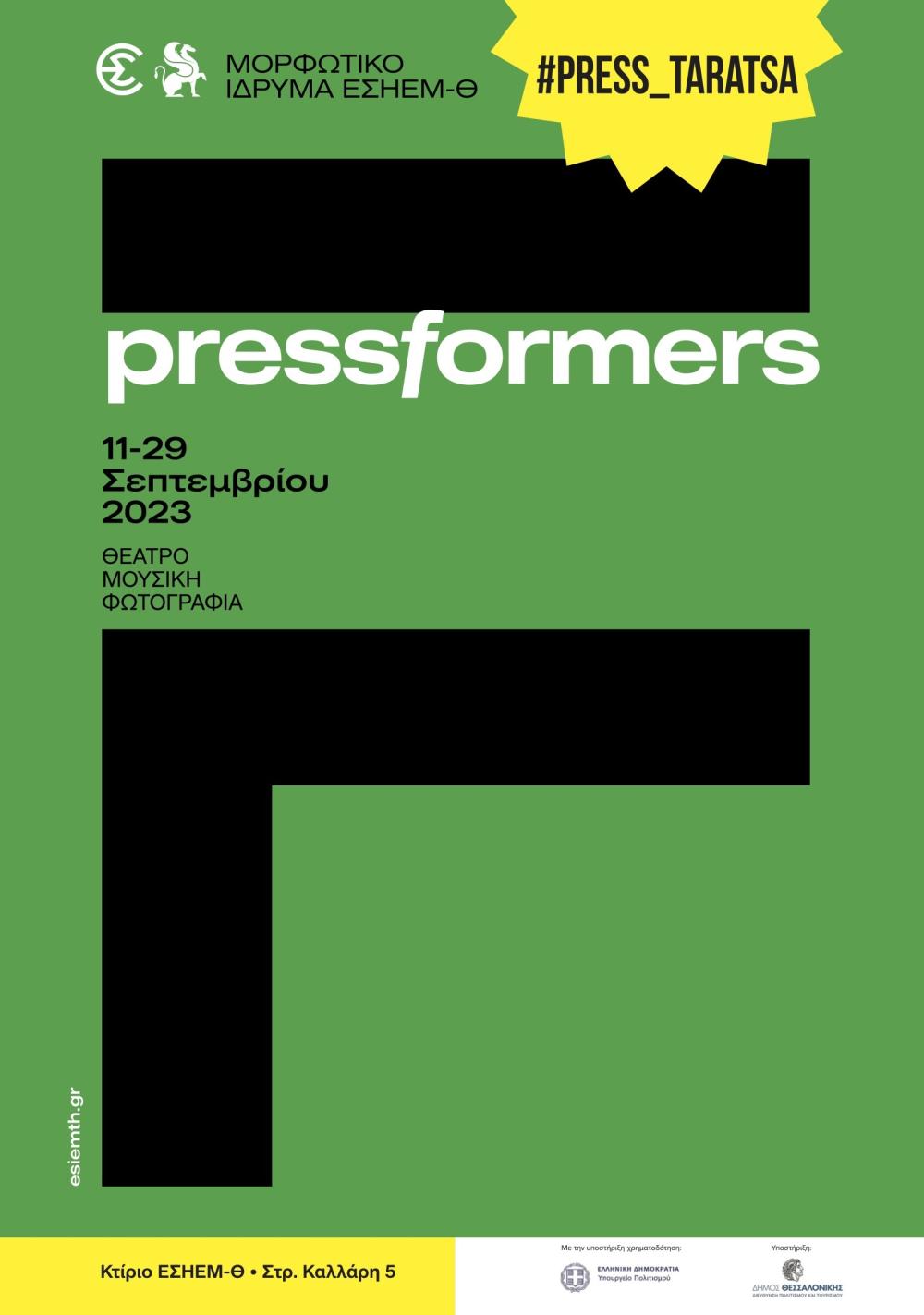 Τα δρώμενα των PRESSformers περιλαμβάνουν μία θεατρική παράσταση, δυο μουσικά «ταξίδια» στην ποίηση, καθώς και μια ψηφιακή έκθεση φωτογραφίας με συμμετέχοντες δημοσιογράφους.